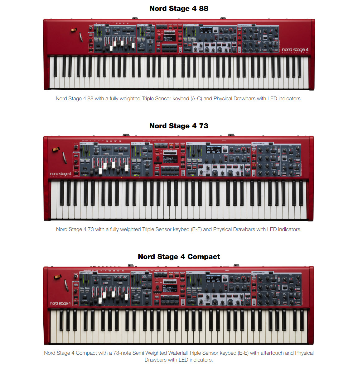 Die neue Synthesizer-Sektion ist eine weitere Innovation des Nord Stage 4. Diese Sektion basiert auf dem Nord Wave 2 und bietet gut 80% dessen Funktionalität. Mit den 3 Layern und patternorientierten Arpeggiatoren kann man komplexe und ausdrucksstarke Sounds kreieren. Typische Nord-Filter und Synthparametern ergänzen diese neue Synthesizer-Sektion im Nord Stage zu einem vollwertigen virtuell analogen Synthesizer, der neben den klassischen Wellenformen auch Wavetables und Samples im Programm hat.