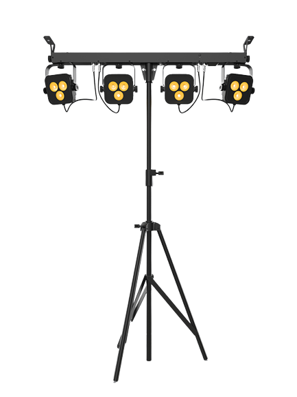 - 4 individuell im Panorama verstellbare Wash-Scheinwerfer sorgen für maximale Ausleuchtung der Event-Location