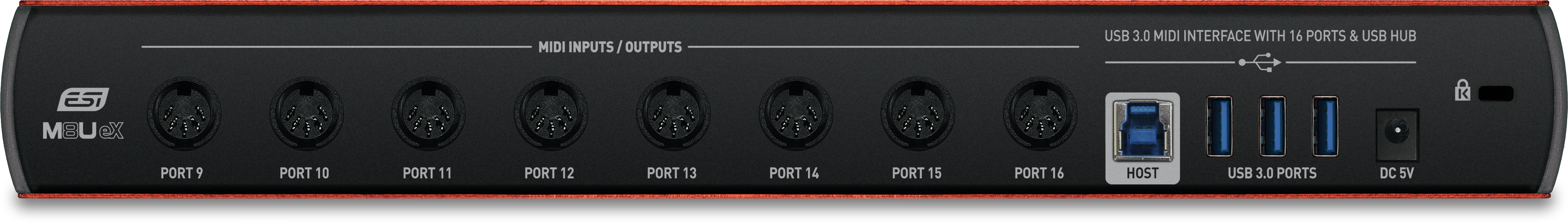 Unser äußerst leistungsfähiges M8U eX ist ein modernes USB 3.0 MIDI-Interface mit insgesamt 16 MIDI Ports in einem einzelnen Gerät.