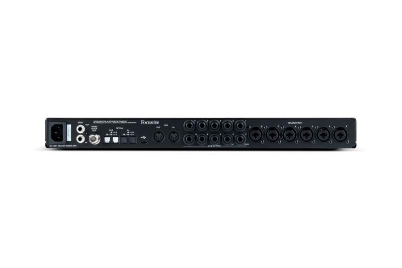 | Anschlüsse: | 2 ADAT Ein- und Ausgang , 2 S/PDIF Ein- und Ausgang coaxial , Kopfhörerausgänge: 6,3 mm Klinke , MIDI Ein- und Ausgang, USB-C Anschluss |