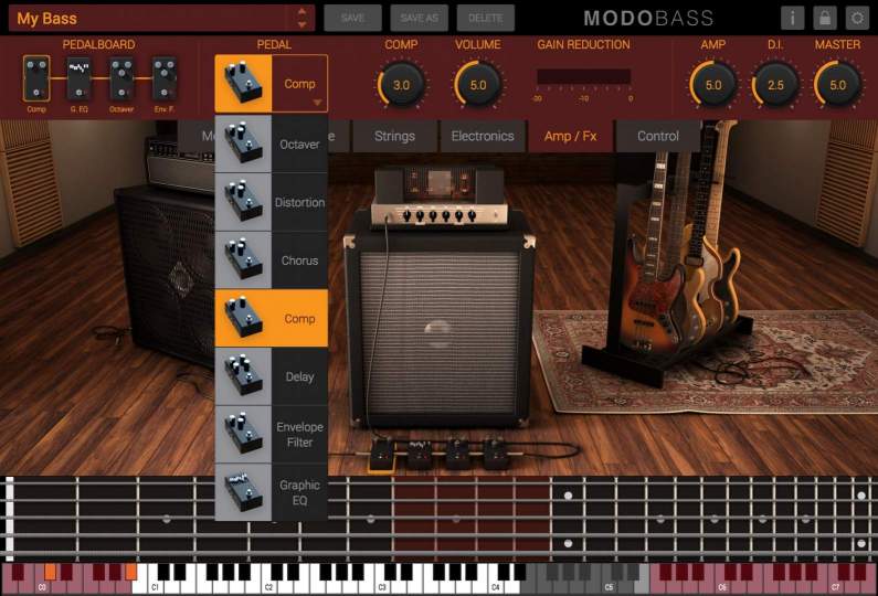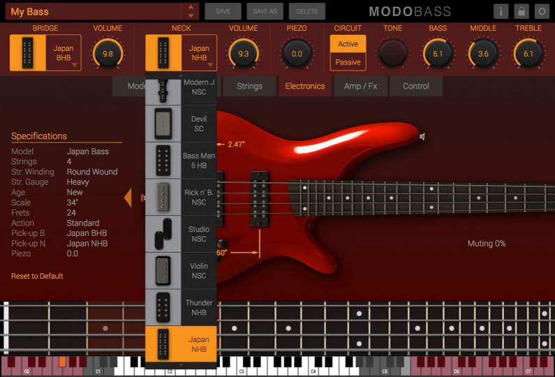 MODO BASS erreicht dank achtjähriger Forschung und Entwicklung ein bisher nicht für möglich gehaltenes Level an Realität und stellt Musikern und Produzenten alle denkbaren Spielarten und Klänge eines elektrischen Basses zur Verfügung. MODO BASS ist dabei dank der Physical Modeling Technologie in allen Bereichen der Klangbeeinflussung (Klangcharakteristik, Signalwege und Spieltechnik) frei einstellbar und bildet damit die komplette Interaktion zwischen Instrument und Musiker ab. Zu den zahlreichen Parametern gehören neben den 12 Instrument-Modellen eine Sammlung aller wichtigen Bässe, die man aus den Aufnahmen der letzten 50 Jahrzehnte kennt u.a. auch die Anzahl, Art und Dicke der Saiten, ihr Abstand zum Steg, die Interaktion mit dem Korpus und den Pickups des Instruments (20 verschiedene Pickups stehen zur Auswahl), sowie die Modelle von 7 verschiedenen Stompbox-Effekten und diverser Verstärker und Kabinetts (1×15 und 4×12). Drei verschiedene Spieltechniken (Pluck, Pick, Slap) sowie Realtime MIDI-Kontrolle und Keyswitching zum schnellen Wechsel zwischen Spielarten und runden das Bild ab und bringen Leben in jede Bass-Aufnahme.