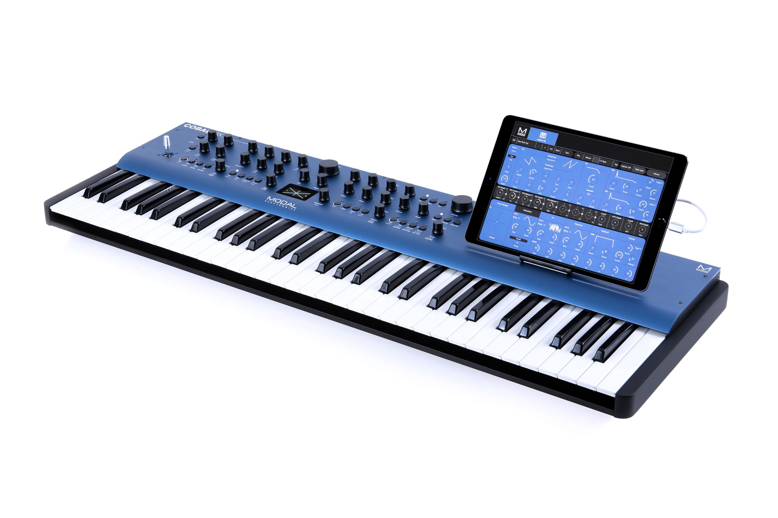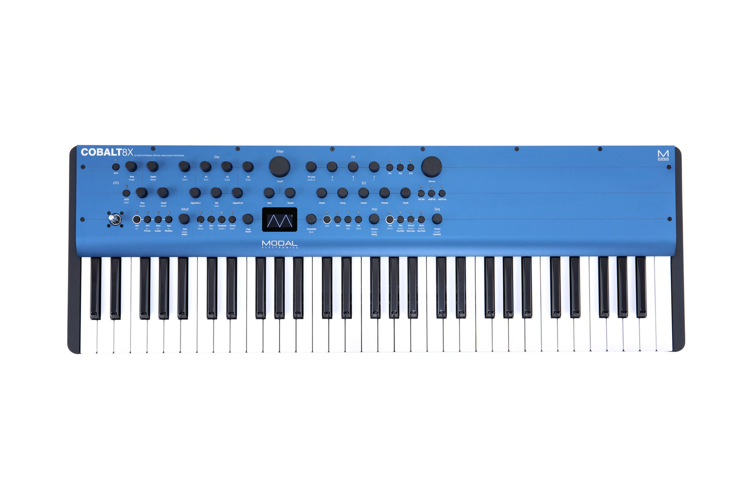 Der COBALT8X von MODAL Electronics ist ein 8-stimmig polyphoner, virtuell-analoger Synthesiser mit 64 Oszillatoren (8 pro Stimme), einem morphbaren 4-Pol-Ladder-Filter und einer Klangpalette, die sich von klassischen Analogsounds bis hin zu bisher ungehörten Klanglandschaften erstreckt. Auf Wunsch lassen sich die aus legendären Analogsynthesisern bekannten und beliebten Wellenformen nämlich durch 40 unterschiedliche Algorithmen wie Crossmodulation, PWM, Morphing, Bit Crushing usw. modulieren und somit zu völlig neuen Klängen verformen. Über seine 61 anschlagdynamischen Tasten mit Aftertouch lassen sich die so erzeugten Klänge besonders expressiv spielen. Einen entsprechenden, optionalen Controller vorausgesetzt, unterstützt der COBALT8X außerdem MPE (MIDI Polyphonic Expression) für nochmals ausdrucksstärkere Performances. Das resonanzfähige Multimode-Filter bietet gleich vier verschiedene Charakteristiken zur Auswahl und lässt sich in bewährter MODAL Tradition stufenlos zwischen verschiedenen Modi hin- und hermorphen. Modulationsseitig bietet der COBALT8X drei Hüllkurven (Amp, Mod und Filter) sowie 3 LFOs (2 x polyphon, 1 x global), die sich gemeinsam mit allen anderen Modulationsquellen in 8 frei zuweisbaren sowie weiteren 4 voreingestellten Slots verwalten lassen. Die so erzeugten Klänge können auf Wunsch über den programmierbaren Arpeggiator oder den polyphonen Sequencer mit 64 Steps oder 512 Noten animiert werden. Zum perfekten Abrunden der Sounds steht dann auch noch eine umfangreiche Effekt-Sektion bereit, in der bis zu 3 hochqualitative Effekte gleichzeitig verwendet werden können. Die kostenlose MODALapp, die für PC, Mac, iOS und Android sowie in den Plug-In-Formaten VST3 und AU verfügbar ist, ermöglicht das komfortable Editieren und Verwalten der Sounds am Bildschirm.