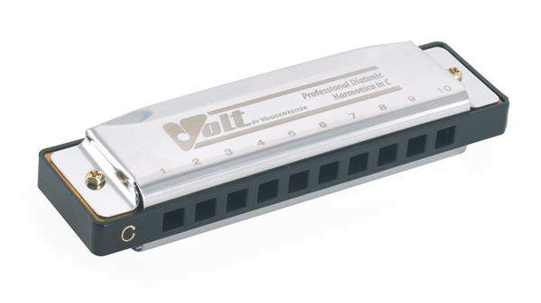 Die VOLT Mundharmonika ist in C gestimmt (diatonisch, Blues Harp, Richter-Modell). Weitere Eigenschaften: Deckel aus Edelstahl, ABS-Kanzellenkörper und Messing-Stimmplatten.
